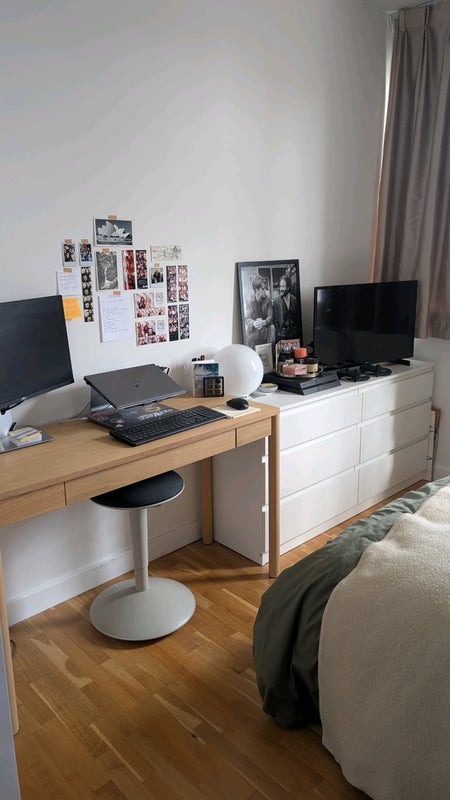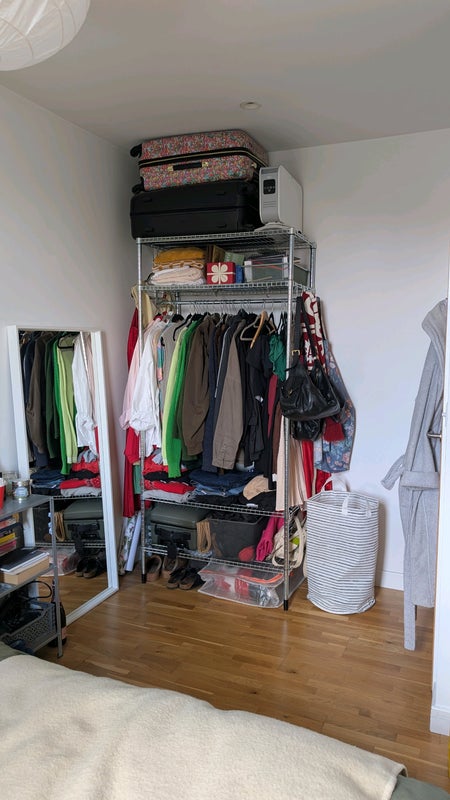 It's a well sized double room with space for a clothes rack, dresser and desk. You'll have exclusive use of the main bathroom which is also really well sized. The room comes furnished with a double bed/mattress and clothing rack (different than the one in the photos).