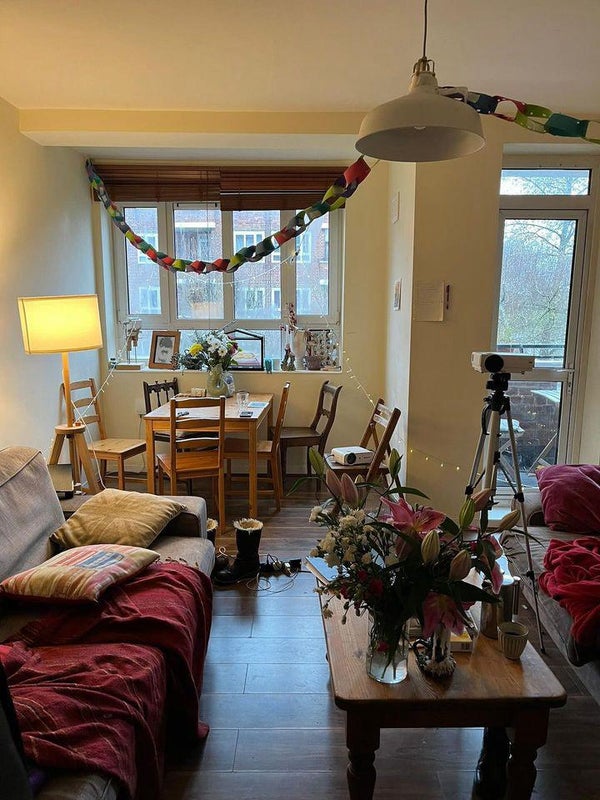 It’s in a 4 bed flat ( 24-26 yo) working and studying. Nice living room and balcony. 10 min walk from both Canonbury Station and Dalston Kingsland as well as very good bus links to central from Newington green (73) . Really lively and fun area to be for summer with lots of green spaces around. ( clissold park , London fields, hackney down!)