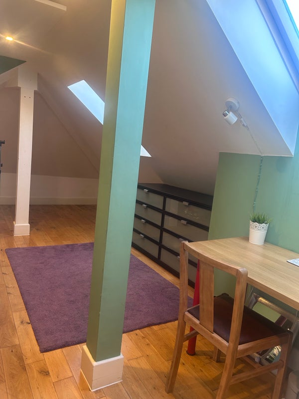 I am a 43 year old gay male journalist living in Dalston with my dog Ripley and looking for a new housemate! I have a room to rent for a long-term/ongoing let in my two-bedroom flat. It is a spacious, loft room with newly-refitted ensuite bathroom which comes furnished with a double bed, chest of drawers, desk, lamps and a clothes rail.