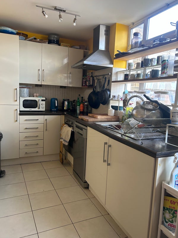 The flat is a 2 bedroom maisonette, with a ground floor entrance and set across three floors, in a small and friendly gated block in Dalston. There is a nice and colourful kitchen/living area and a shared courtyard area.