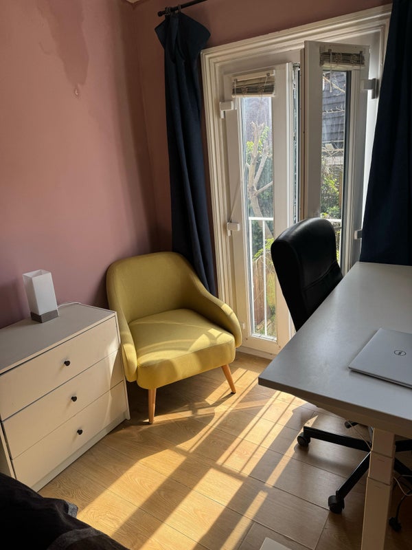 Lovely double room available with flexible move in date until late April in a friendly houseshare in De Beauvoir Town. The room comes furnished with a double bed, wardrobe, drawers, and armchair, and has its own French doors overlooking the garden.