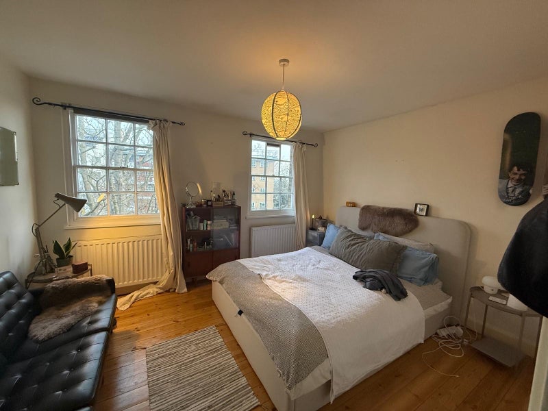 The room comes unfurnished and has an extra large built-in wardrobe and two large sash windows.