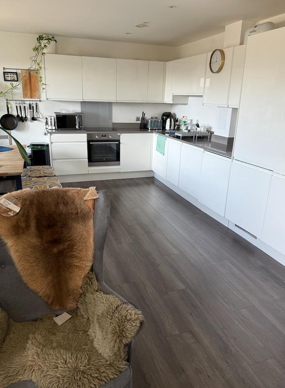 A modern flat with all amenities, kitchen comes with all necessary appliances- hob, kettle, toaster and also has a dishwasher. The landlord also has loads of lovely plants in the living room and the balcony, which gives a nice touch to the house!