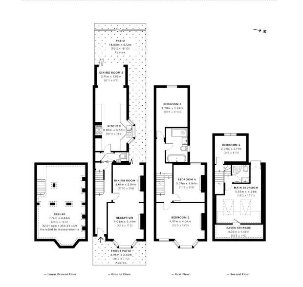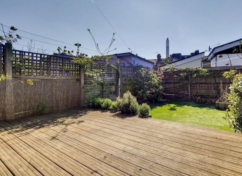 The ground floor comprises of naturally exposed wooden flooring running throughout the hallway and living room, whilst the beautifully large kitchen and dining area is flooded with natural light. The back garden is accessed by the large floor to ceiling glass doors which opens onto a decked space area of the garden. The large reception room with plantation blinds in the front windows, is tastefully decorated and boasts two fire place features.