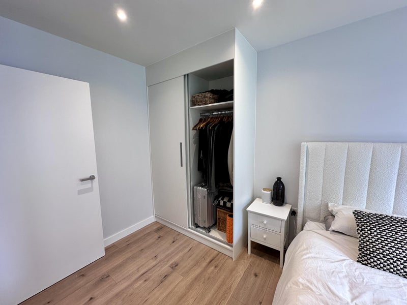 I separately arranged a super-king ottoman bed with storage underneath and bedside tables, so there’s flexibility for the incoming tenant: