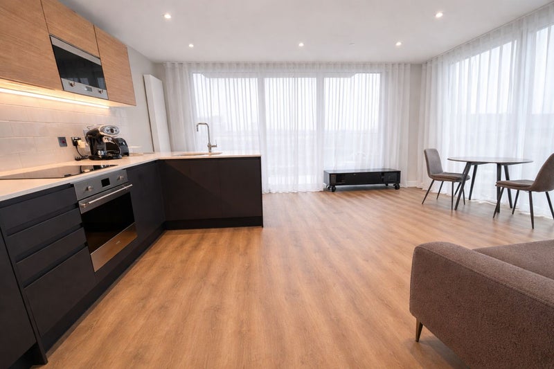 Modern 1 bedroom new build flat with a bright, open-plan kitchen and lounge. Perfect for short-term stays.