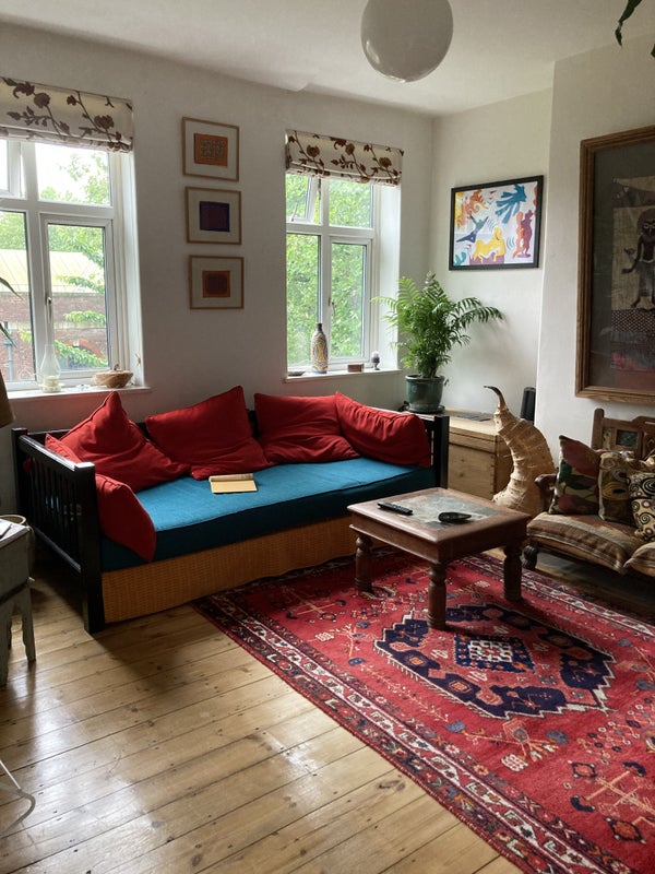 We have a lovely double room in a flat that has two floors. The bedrooms and bathroom are upstairs, with the living room and kitchen downstairs. We are very friendly, informal but respectful and like a tidy household for everyone's benefit. We love cooking and sharing our food if you like it hot and having some good conversations over a glass of wine. There is a real sense of a home feeling. We do expect our flatmate to share the normal thing of cleaning and being respectful of each other's space.