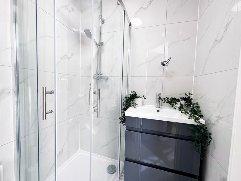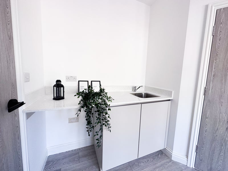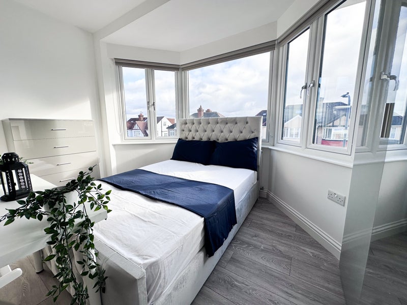 Room: Furnished with double bed, chest of drawers, wardrobe and desk. Ensuite bathroom with shower