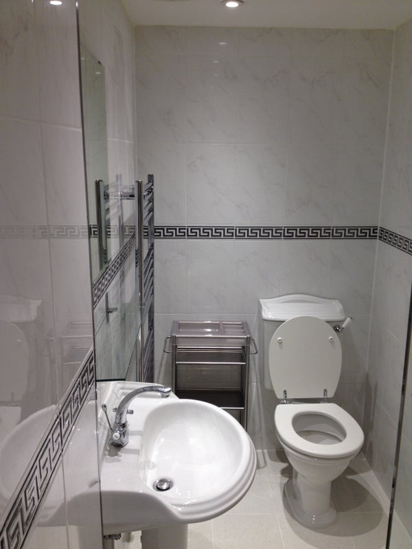 Bathroom benefits from quality shower, basin with pedestal, low flush w. C, fully tiled throughout