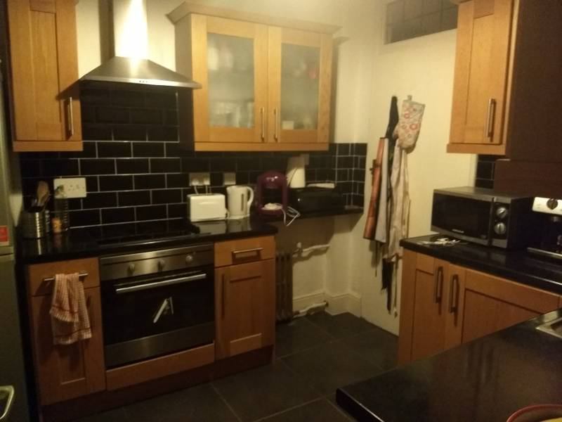The rooms are fully furnished with double beds, bedside stools, chest of drawers, desk, chairs and big wardrobes. The kitchen has all you need if you don't have anything, or lots of space if you do (It even has a washer/ dryer and a dishwasher). The rent includes heating and hot and cold water.