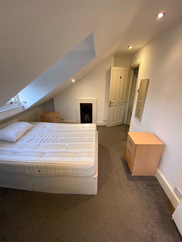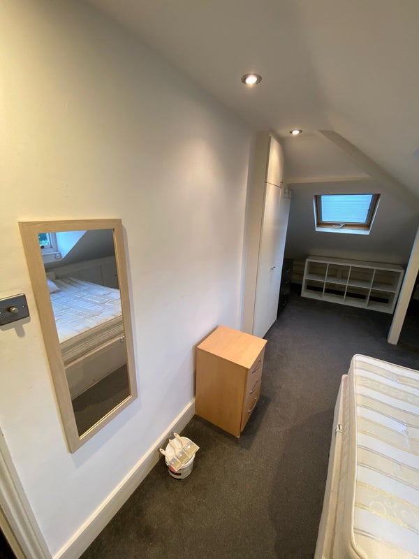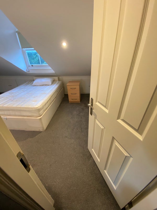 The flat is on the top floor and shared with three other clean and tidy professionals. It features four bedrooms, two toilets (one with a full bathroom), and a shared kitchen.