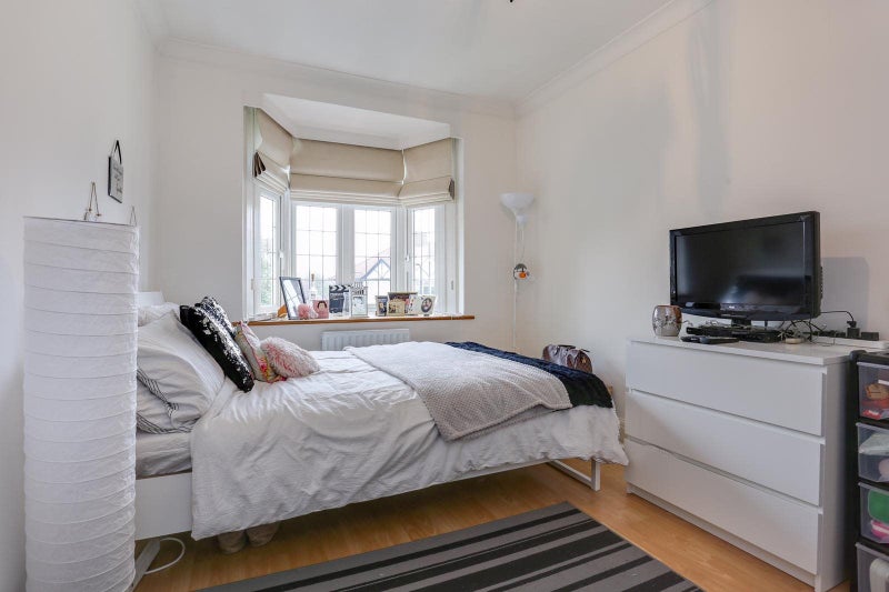 Bright first-floor double, fully furnished with bed and wardrobes.