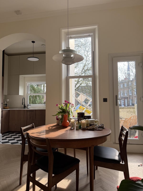 2BD, 2 bathrooms fully renovated first floor Victorian apartment. Open kitchen and balcony overlooking Philbeach communal garden. Available for spring and summer!