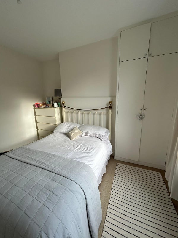 A bright and quiet double room on the first floor, situated at the back of the house overlooking the garden. It has lots of natural light and comes fully furnished with a double bed with four built-in drawers, a fitted wardrobe with double hanging space and a large chest of drawers. You will share the bathroom with just one other housemate.
