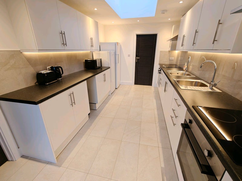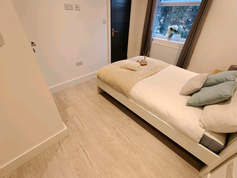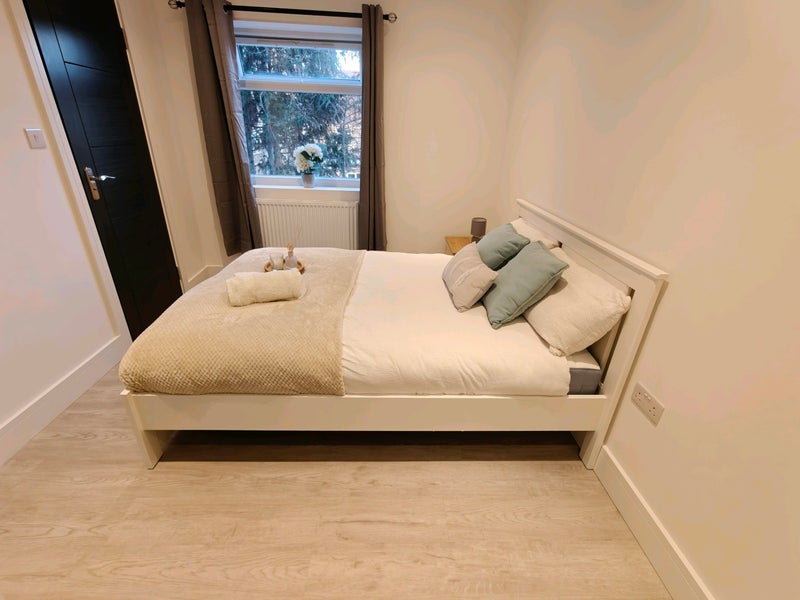A luxury, modern, bright first floor ensuite double room has become available in a freshly refurbished spacious semi-detached house with a garden in a quiet residential street in East Acton.