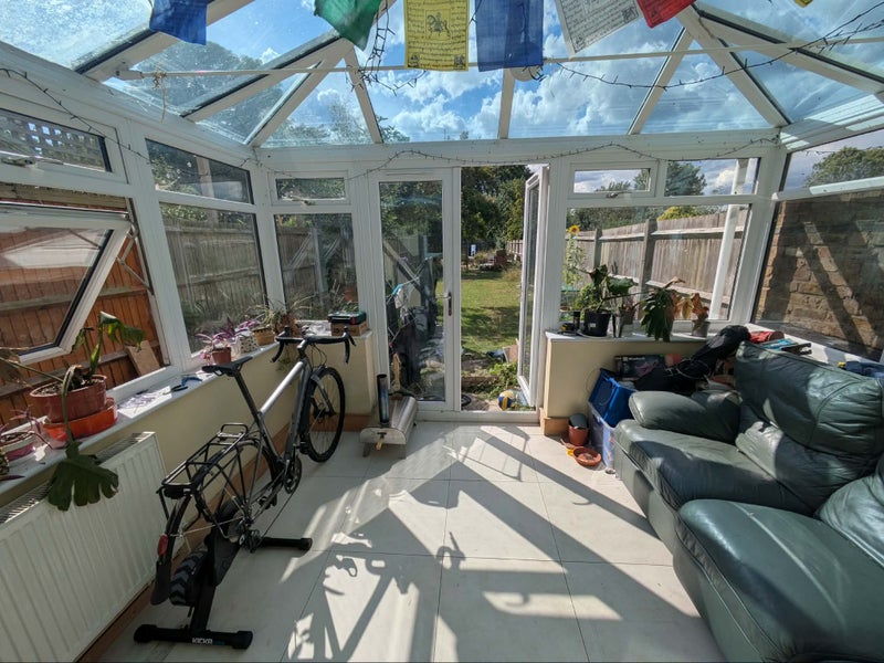 The house is really nice, we have a large living room with a side room. We have a large open plan kitchen and dining room. The kitchen is modern and well equipped. There is a nice conservatory with a really big garden with a seating area and barbeque, plus an apple and a pear tree as a bonus. We have a larger bathroom with a bath/shower and a smaller bathroom with a shower. We have 3 rooms available that all come with double beds and a desk if you work from home.