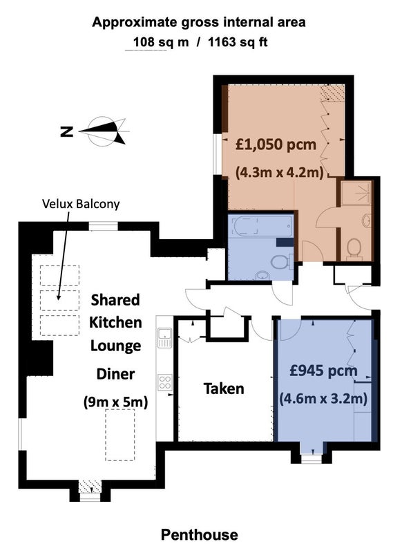Bedroom 2 with shared bathroom: £945 pcm