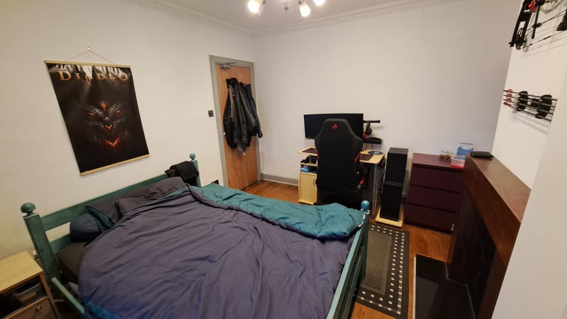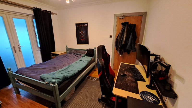 Room comes fully furnished: double bed, bedside table, desk, chair, wardrobe, a set of chest drawers.