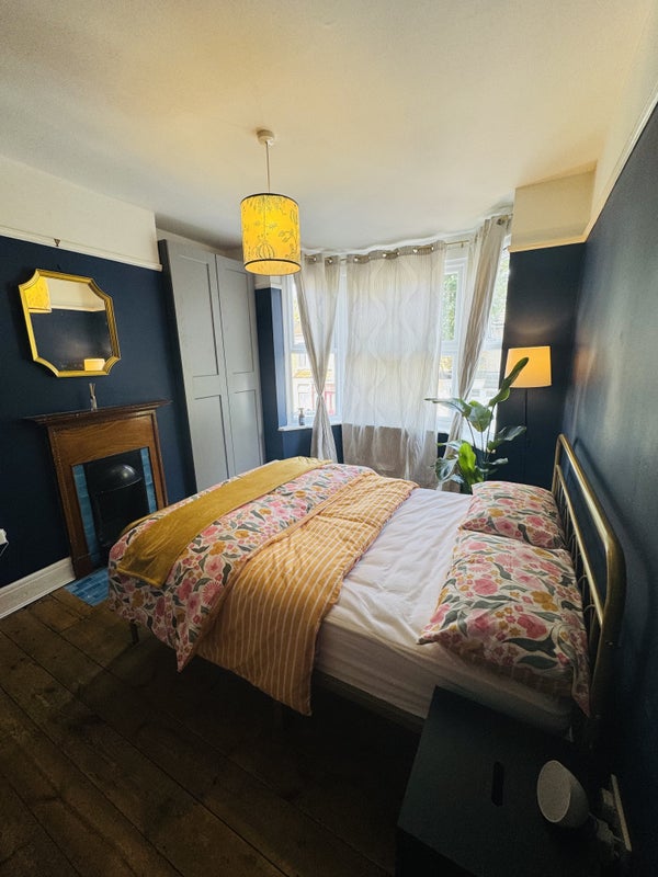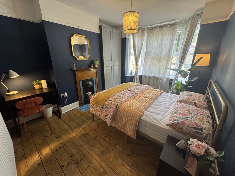 I am a Software Engineer and listing out one of my spare room. It is a bright and spacious double bedroom available in a friendly, well-maintained, newly furnished home. The room features a large bay window that lets in plenty of natural light and comes fully furnished with a comfortable double bed with bedside table with Alexa Echo speaker, a large wardrobe, and a desk with a lamp, perfect for workspace.