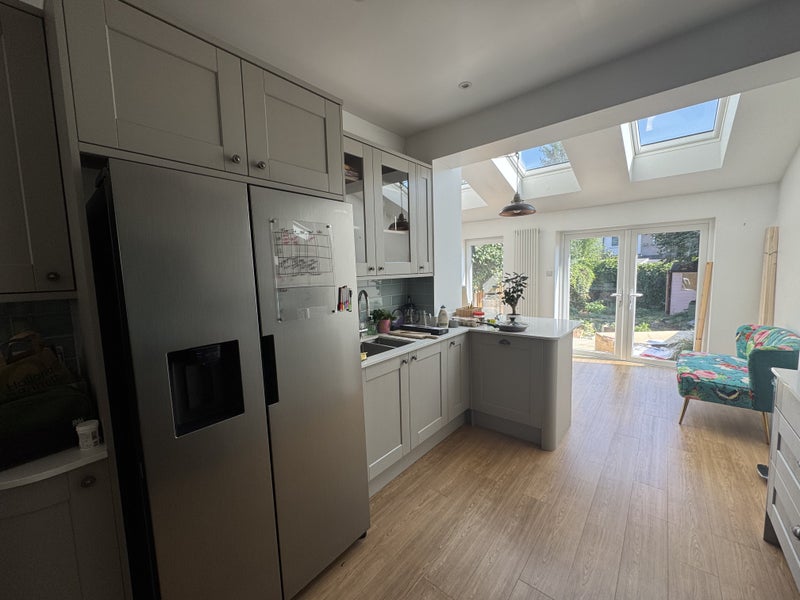 You'll have access to a large modern shared kitchen equipped with an American-style fridge freezer, a dishwasher, and a large 5-burner range cooker, as well as a cozy living area, separate dining room/lounge, and a clean bathroom. This bathroom will only be shared with one other person, she is neat and tidy.