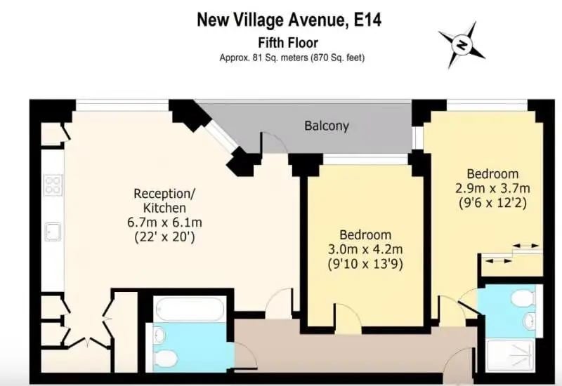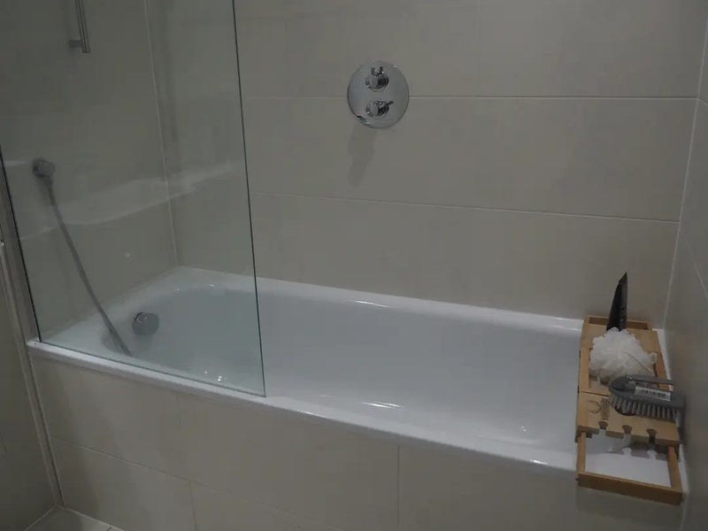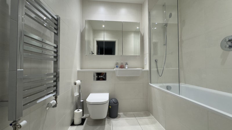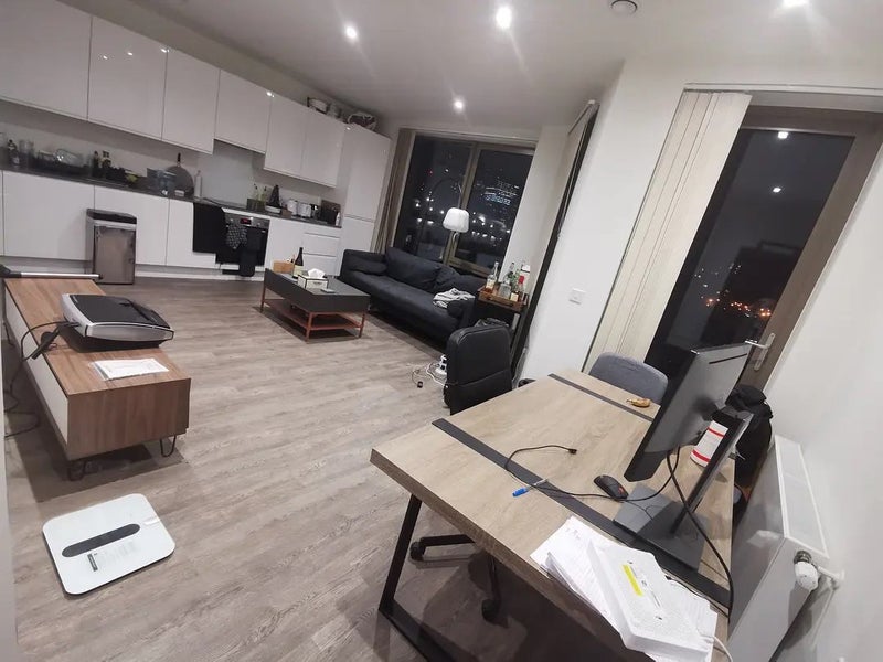 - One large 12 square meter bedroom and large private bathroom. Floor to ceiling window overlooking canary wharf.