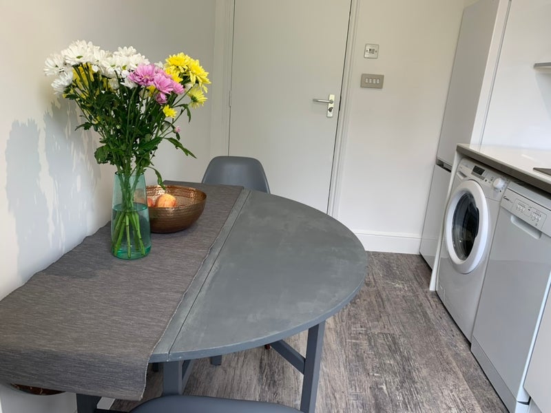 Next to the room there is large modern fully equipped kitchen with a table. Occasionally used by one other person.