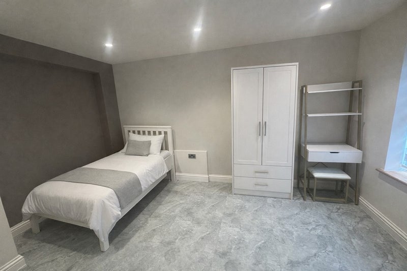 The house features three double bedrooms, two bathrooms, a shared living room, and a kitchen. Everything in the property is brand new. The room comes with a single bed, a desk, and a wardrobe, and you will have your own private bathroom.