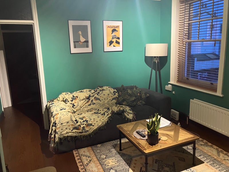 My spare bedroom is available in a lovely 2-bed flat in East Sheen. It is about a 1-minute walk from Mortlake station, so quick and easy connections to Richmond, Clapham, Waterloo, and more. Available from the beginning of April, but there's some flexibility on that.