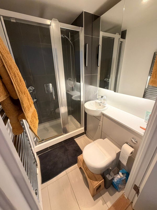 The flat has a dishwasher, washing machine, open plan living and dining area and a large balcony that gets sun all day during the summer. We’re a four minute walk from Stratford International DLR and about an eight minute walk to Stratford station. We are also 1 min walk from GymGroup and Sainsburys.