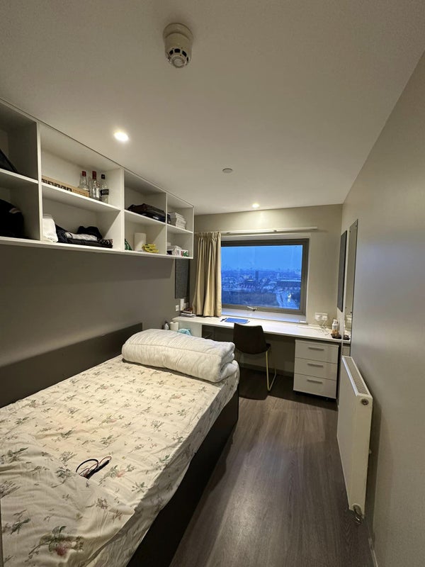 -This room comes equipped with a private bathroom, a large window providing the best views of London skyline, a double sized bed, mattress, chair, big study table, drawers, lots of storage, a wardrobe and a heater. This room is on the 14th floor of the building and I can guarantee it provides the best views of the surrounding areas.
