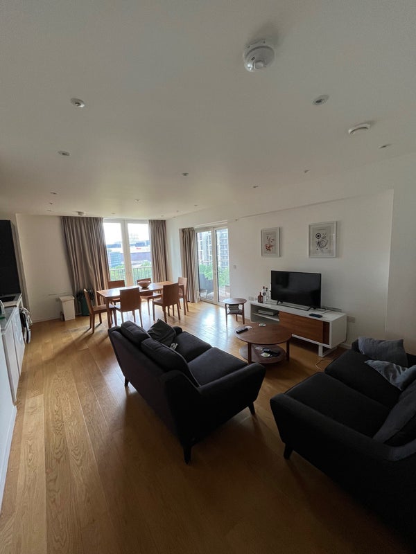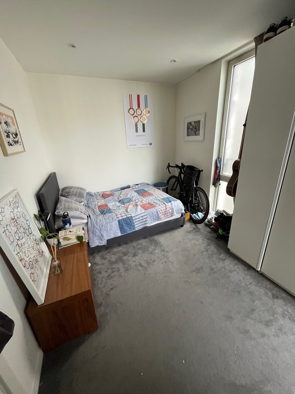 The flat is a short walk from Hackney Wick, Stratford station, and Westfield.