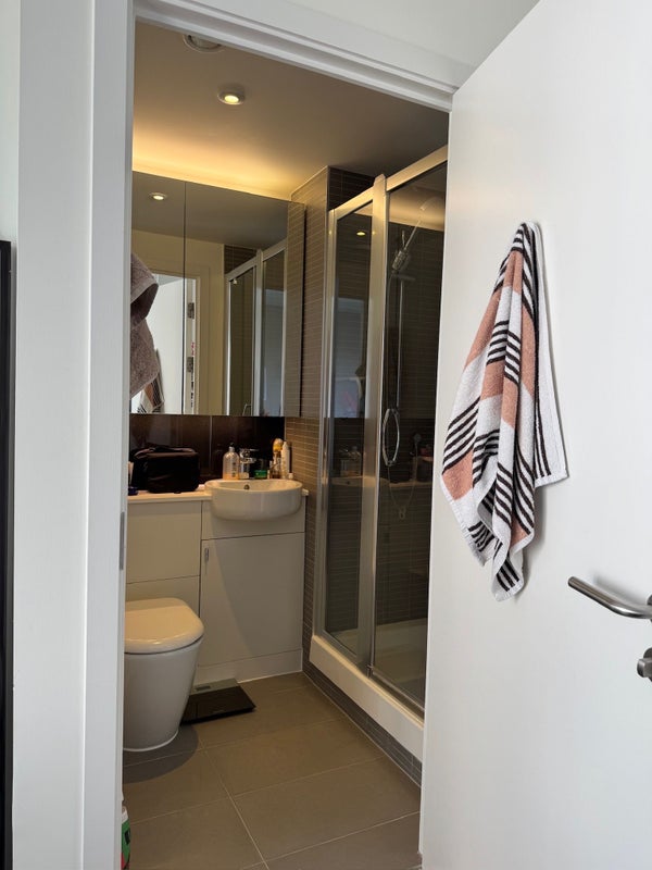 A bright and comfortable en-suite double room is available from mid-June in a modern, well-maintained flat in East Village, Stratford.