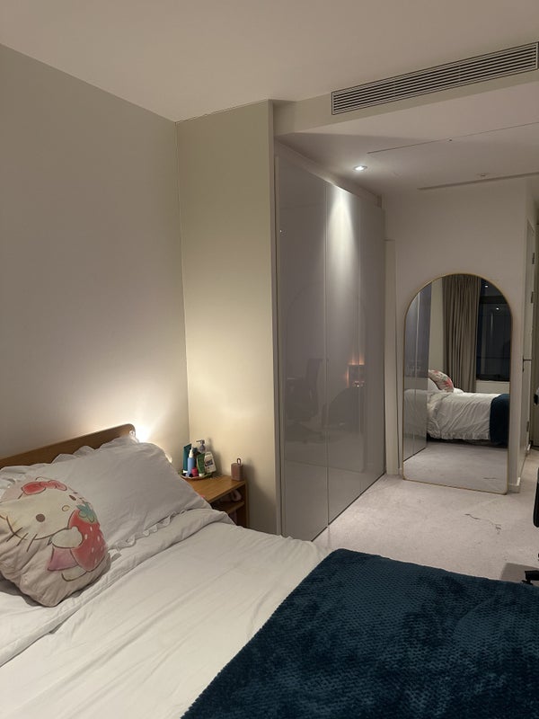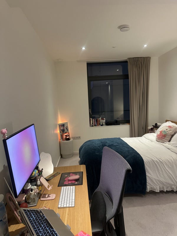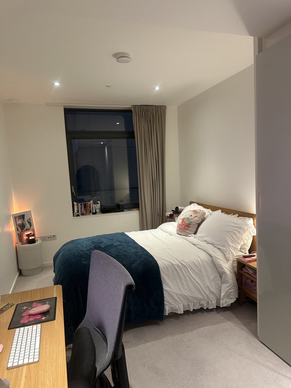 The room itself is the biggest in the flat, so you’ll have lots of space. It’s bright and spacious, with a big wardrobe and plenty of storage, plus a really nice private en-suite bathroom. The room is furnished, but it’s fine to bring in your own bits if you have them (please note: the bed will have no mattress, but one can be requested from East Village residents).