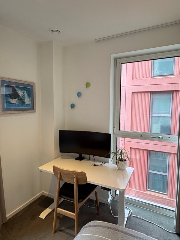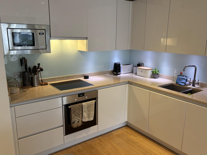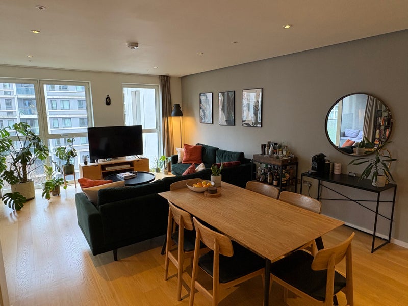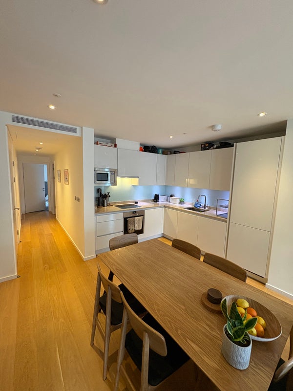 The 3-bed 5th floor apartment is fully furnished and comes with a winter garden, three double bedrooms, two bathrooms (one en-suite). There is a spacious, open plan kitchen, dining area and living room. We are located in a very quiet and calm part of the East Village, surrounded by green space with no traffic noise. The Olympic Park is next door (with great sports facilities!), and Victoria Park and the Hackney Marshes are a 15 min walk away.