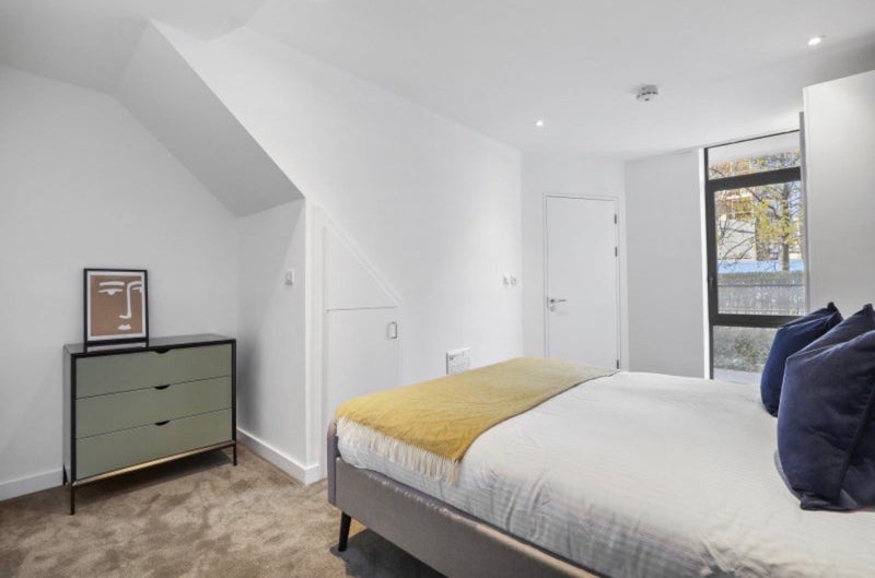 The bedroom available has a double bed, Ensuite Bathroom, space for desk, a large wardrobe and lots of storage, with additional storage outside of the room.