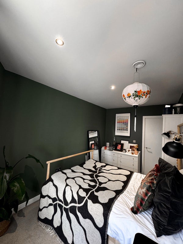 Double room with bathroom shared with 1 other person. Comes furnished with a comfy double bed and 2x chest a drawers. We would want to keep the full bookshelf in the room for convenience, but let us know if you’ve got any other pieces to store as there is some additional storage in the hallway for coats/bags.