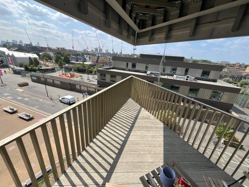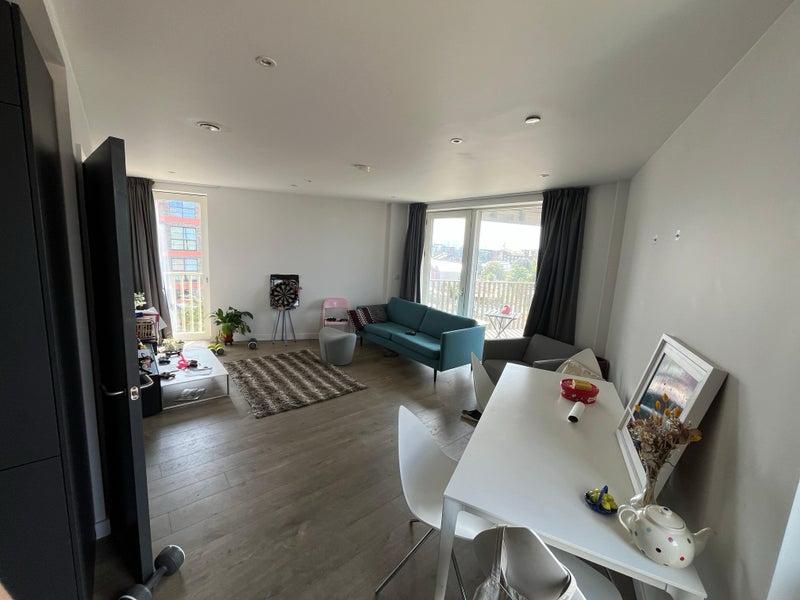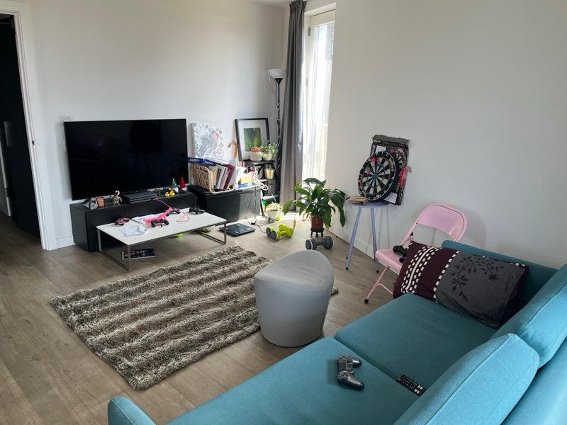 Flat: Modern 3-bed in Hackney Wick- fully furnished living room, TV, fitted kitchen, balcony, fast Wi-Fi and a dart board.