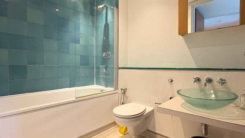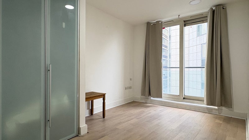 Situated on the sixth floor and spanning approximately 636 sq. ft., this bright and modern flat benefits from large windows and high ceilings, allowing for excellent natural light throughout and a real sense of space.