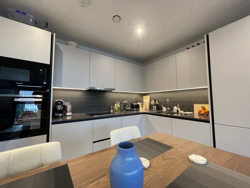 Bright, south-facing flat on the 9th floor of a modern development overlooking Elephant Park. We're a couple with a spare room - and we're looking for the right person to join us, not just fill a space.