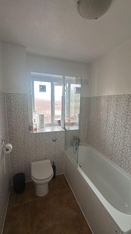 Fully fitted kitchen with appliances: large freezer, washing machine, microwave, kettle, new plates, cutlery, mugs, etc.