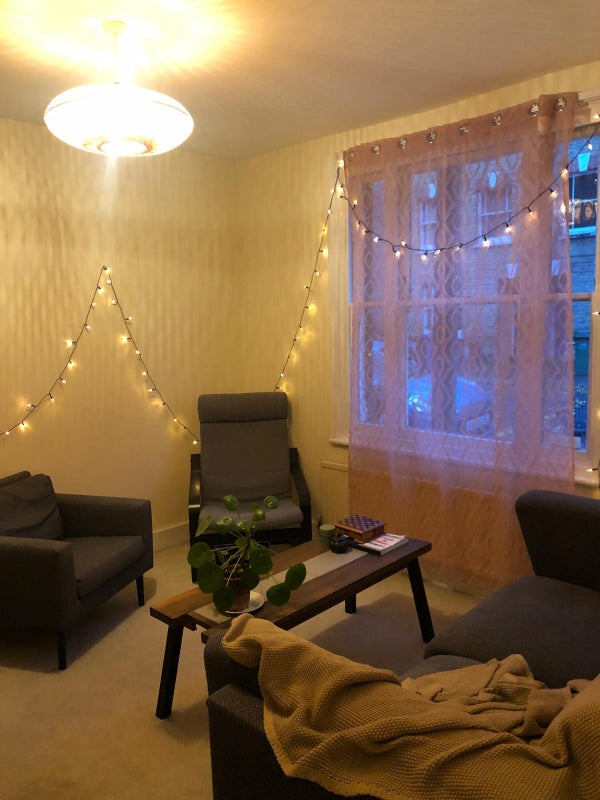-Your room is the ground floor bedroom with comfy double bed and plenty of storage. The window has a lock and looks out onto our little garden space; it catches the light very well.