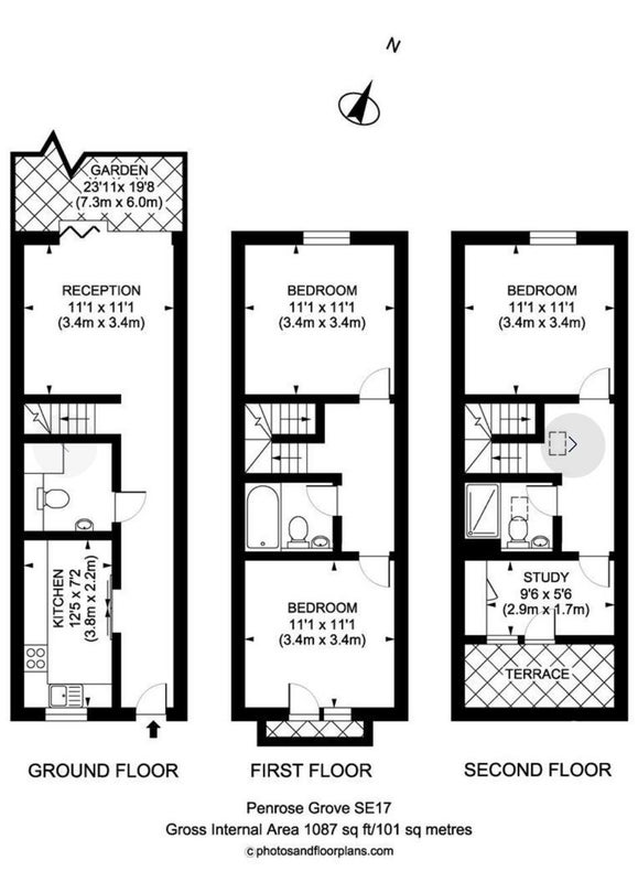 Newly built mid-terrace house finished to an excellent standard, split over 3 floors and complete with a private garden, study and balcony on the top floor.