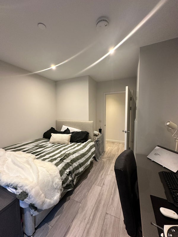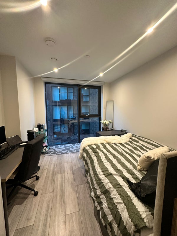 A bright, spacious, and fully furnished double room available in a high-end modern flat. Comes with a comfy double bed, a large wardrobe, and a dedicated desk space, perfect for WFH :)