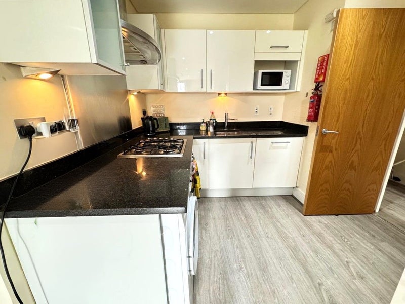 Zen Homes present this stunning one-bedroom apartment to rent, offering modern living in a highly sought-after location, perfectly combining style, comfort, and convenience. The property boasts a beautifully designed open-plan kitchen and spacious lounge area, complete with high-spec integrated appliances and impressive floor-to-ceiling windows that flood the space with natural light, creating a bright and airy atmosphere throughout.