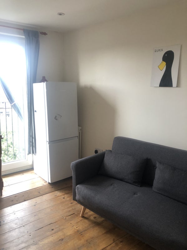 Large double bedroom with a built in wardrobe, 3 skylight windows (north/street facing), airy with lots of light. Furnished, roomy with lots of additional storage space.