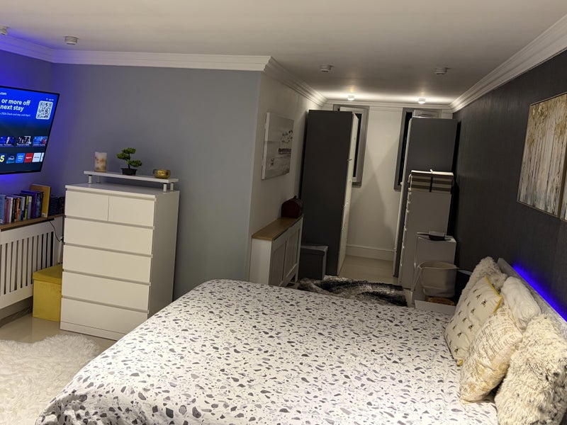 A stunning, large double room available in a modern 3-bedroom apartment, newly furnished with high-quality furniture throughout. The room includes a private ensuite bathroom and your own TV, offering both comfort and privacy.