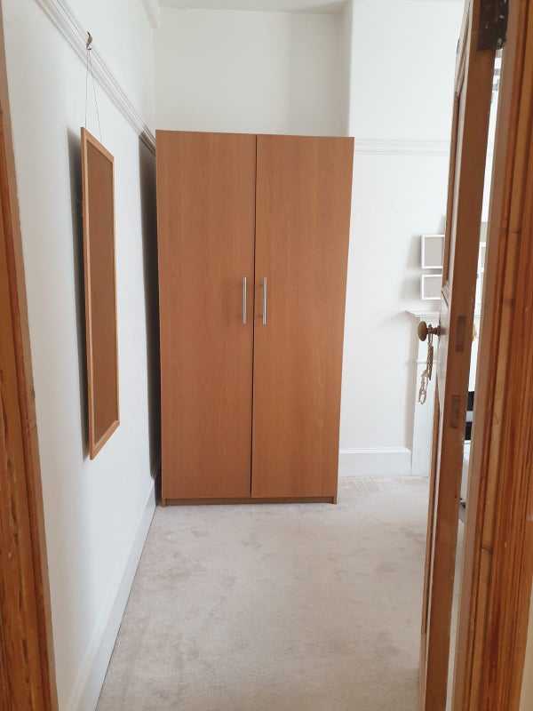 The available double bedroom is spacious & bright with lots of natural light, and for single occupancy only. With original feature fire place and surround, huge window and lots of storage (large double wardrobe, chest of drawers & bed side drawer). With extra external storage in a locked downstairs basement.