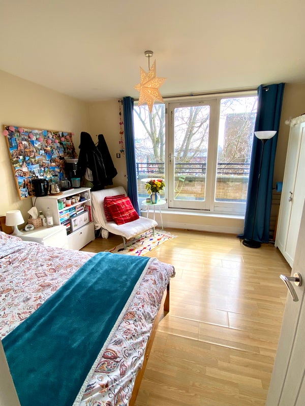 This is a spacious and bright room with an en-suite and a balcony, in a lovely friendly house share.