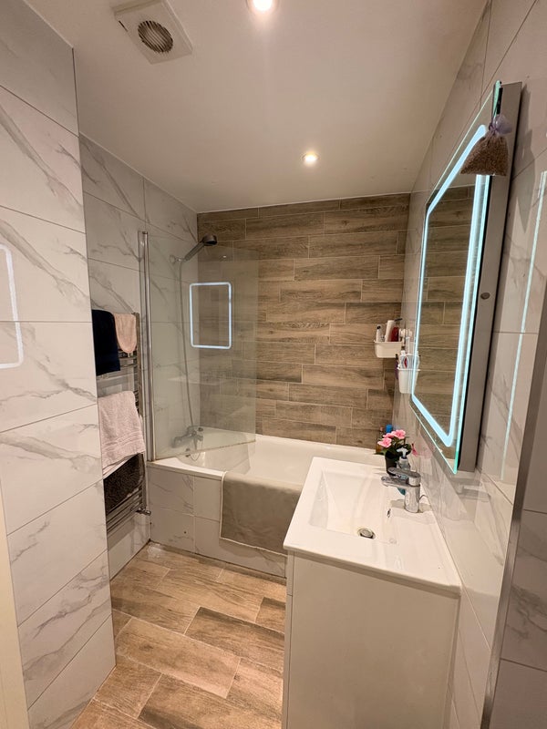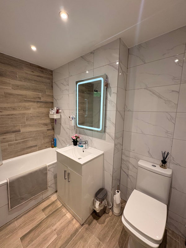 Current flatmates are a couple and a single. The couple have their own ensuite and you will be sharing the other bathroom with only one other. Sociable flat where we enjoy to catch up at the end of the day but also we all appreciate our down time.