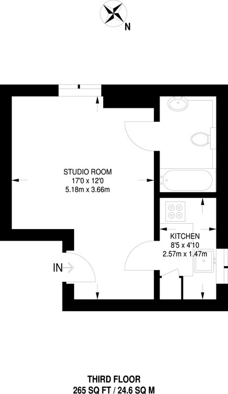 A bright, top-floor studio apartment located on a quiet residential road just off Crouch Hill. The flat benefits from high ceilings, double-glazed windows and good natural light, creating an open and comfortable living space.